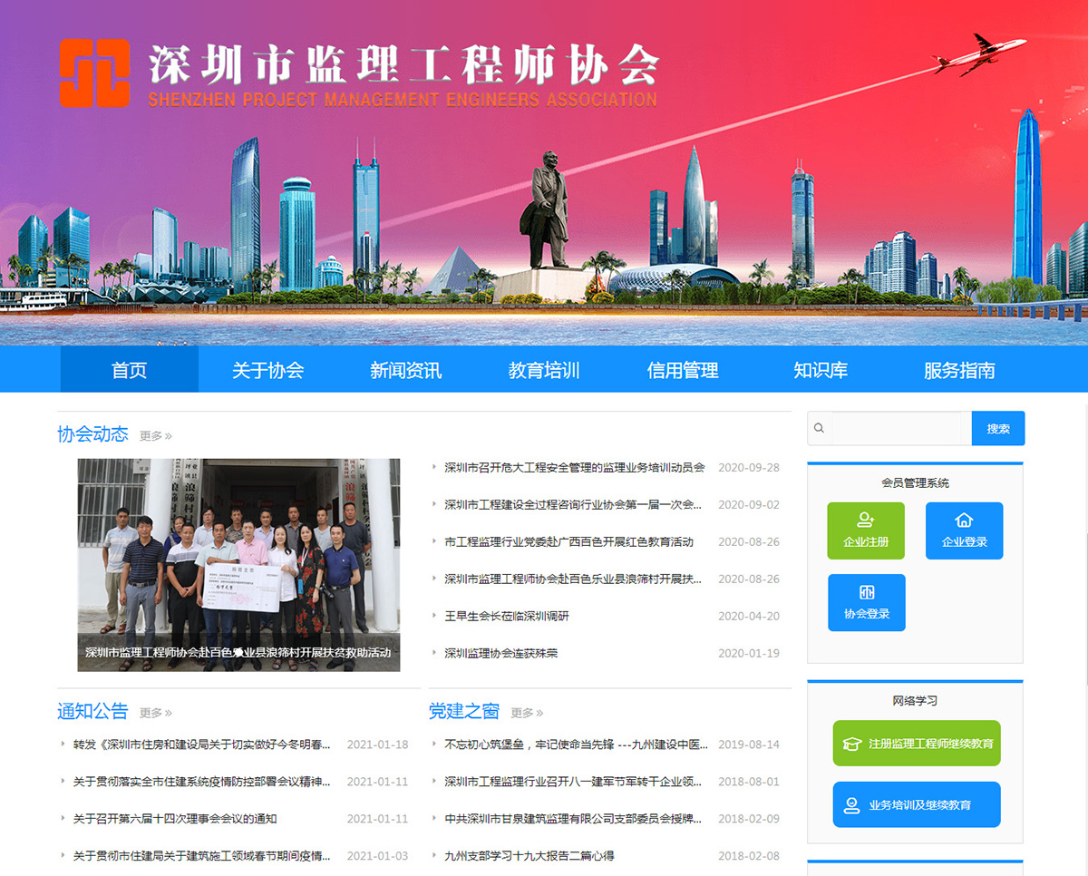 为深圳监理协会搭建了三大系统:协会官网、会员管理系统、培训考试系统,实现协会信息化的统一高效管理,系统建设成果获得深圳监理协会领导及会员企业的一致好评。
