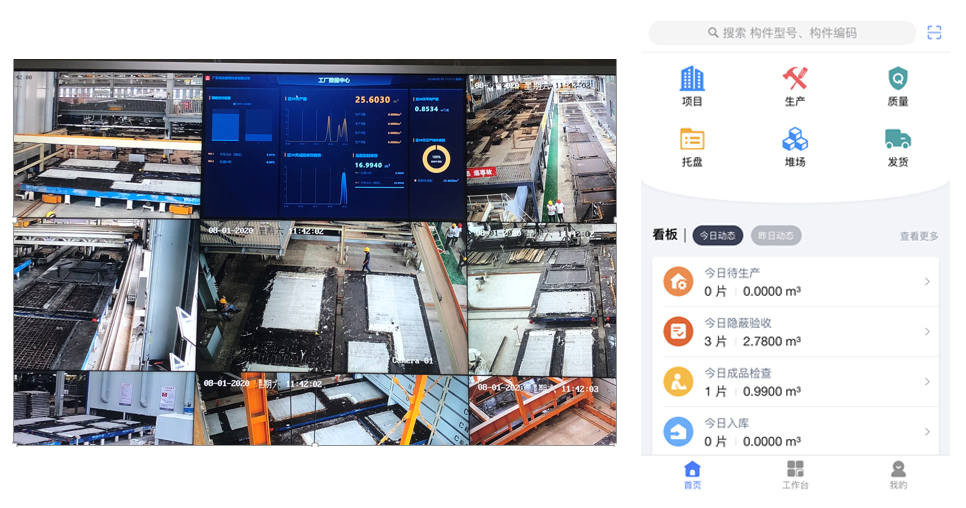 MES系统以辅助生产为核心思想,应用BIM、云计算、大数据、移动互联、二维码等新技术,实现项目管理、生产任务跟踪、生产计划关联物料、质量管控、人员与绩效管理、库存管理等业务流程全覆盖;二维码工厂应用,一物一码,实现生产全过程及库存的智能管控;统一管理门户,集团、公司、车间和堆场四大管理看板,方便各级管理人员快速掌握了解生产信息。五大报表,数据实时更新,自动统计堆场库存、生产量、入库量、出库量、发货车次;PC+APP,实现移动办公,远程即可指挥生产过程,监控工厂运转和项目进度。