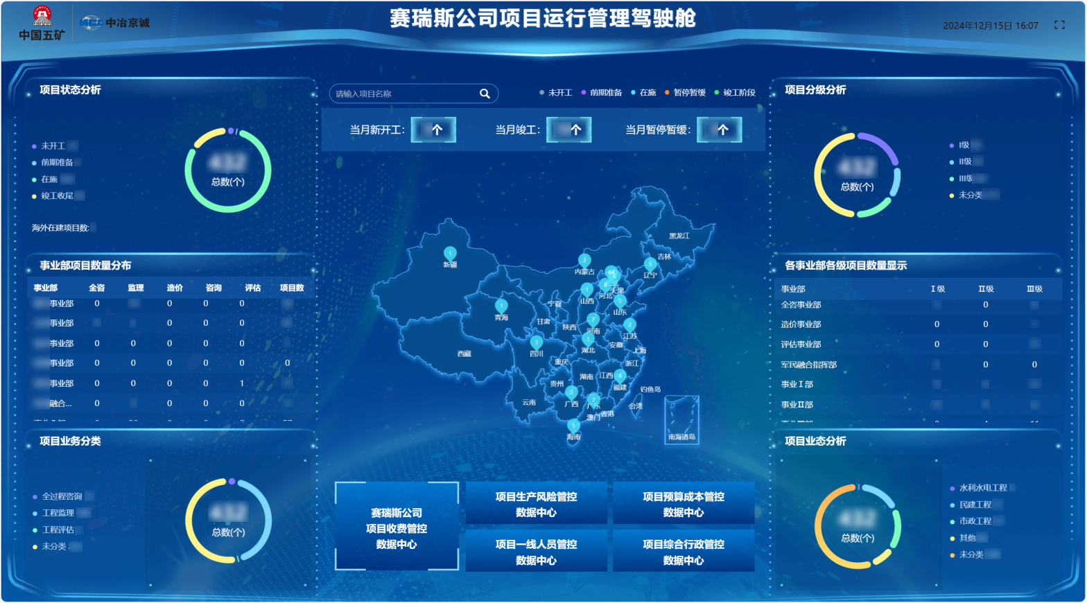 北京赛瑞斯《公司项目管控平台 2.0 》基于广东世纪信通公司自研的信创低代码平台,在标准产品基础上定制开发,平台以“经济”、“运营”为两大主线,集成了智慧驾驶舱、生产管理、风险检查、成本控制、人事管理、合同管理、技术管理、行政综合服务、单项目现场监督、个人事务处理、文档中心以及 AI工标库等 12 个关键功能模块。通过这些模块的应用,实现了对事业部绩效评估及项目从启动到结束全过程中的生产状况、风险管理、费用收取、成本效益等方面的全面监控与管理,为管理层提供了强有力的决策支持。
