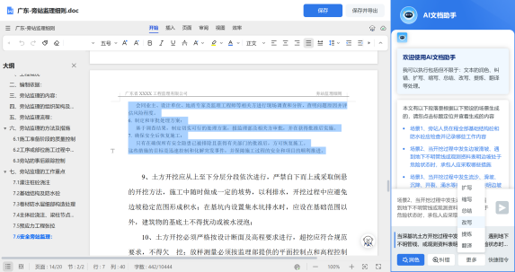 03. AI写作:依托私有知识与项目数据,一键生成方案策划、细则、项目报告等文档,并结合AI提供扩写、缩写、改写、校审、润色等能力,提高文档质量与编写效率。