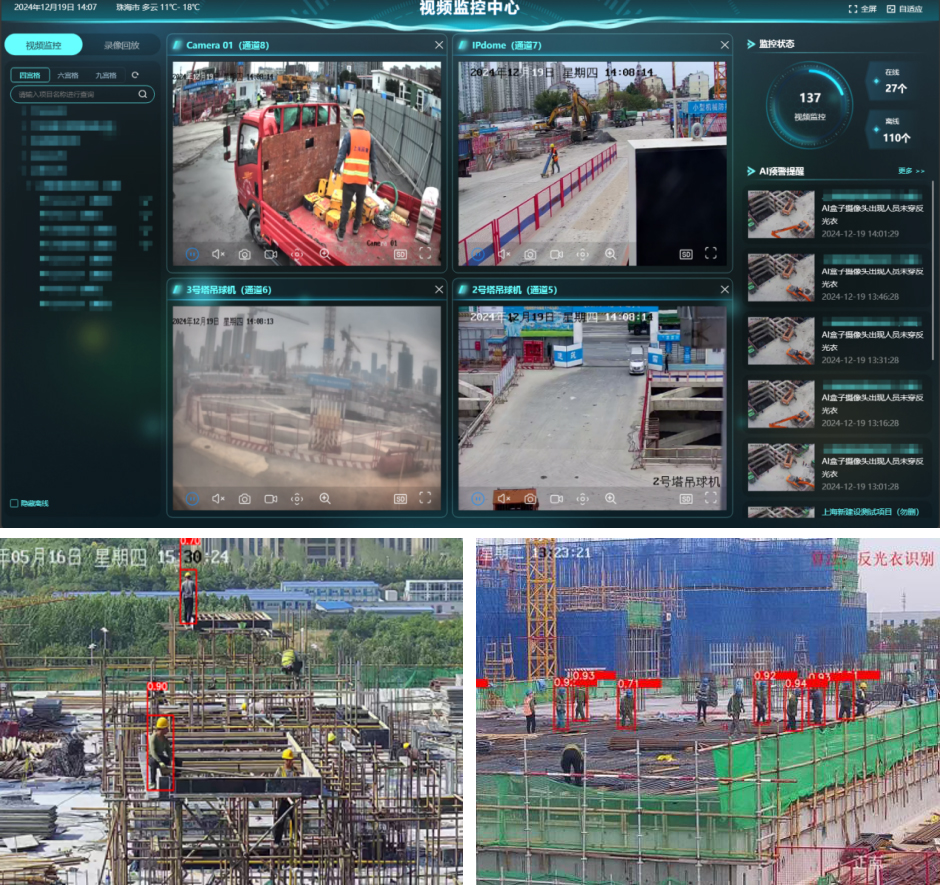 AI天目是一款集AI云管理平台、AI边缘计算盒子(简称AI盒子)、算法、存储、通信、预警为一体的视频智能分析解决方案,无需改动项目现场工地视频监控系统,仅需部署一台AI盒子设备,即可接入多路视频并对每一路工地视频进行多算法智能识别,目前已发布:安全帽识别、高空作业安全带佩戴、反光衣识别、防护围栏缺损、火焰烟雾、区域闯入、人员脱岗、车辆识别、特种设备作业范围等多种算法,AI天目还支持定制算法训练和算法远程升级,让机器代替人工巡查,以机器智能辅助人力监管,实现工地安全管理手段智能升级。