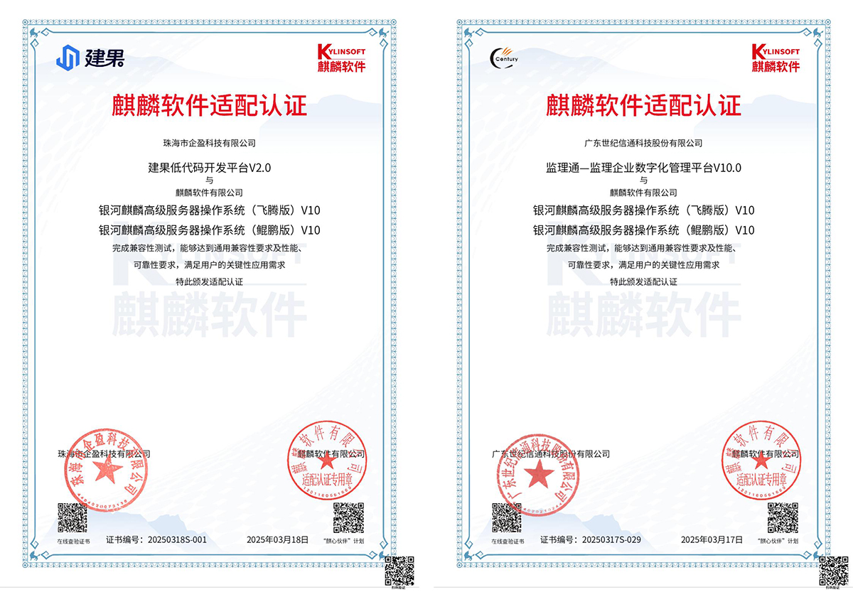 时间:2025-03-26 17:22:46 浏览数:1972在数字化浪潮席卷全球的今天,信息技术自主可控已成为国家战略发展的核心方向。作为工程行业数智化转型服务商,世纪信通积极响应国产化适配工作。近日,经过我司研发团队的不懈努力,建果云与监理通 V10 正式完成与统信 UOS 和银河麒麟两大国产主流操作系统的互信认证!为广大企业客户提供更安全、更高效、更智能的解决方案,实现数字化转型的自主可控与体验升级。