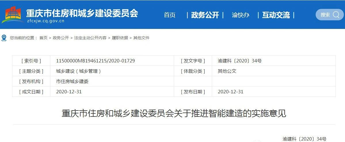 时间:2021-01-19 10:10:47 浏览数:4913重庆市住房和城乡建设委员会日前印发的《关于推进智能建造的实施意见》(以下简称《意见》)提出,到2021年底,智能建造技术创新应用取得重大突破,建成智能建造管理平台和建筑业数据中心,试点数字化建造项目100个以上,实施建筑工业化和信息化融合项目1500万平方米以上,初步建立智能建造模式和与之相适应的制度体系、标准体系、管理体系,初步形成智能建造产业生态,形成较为完善的现代建筑产业链条。